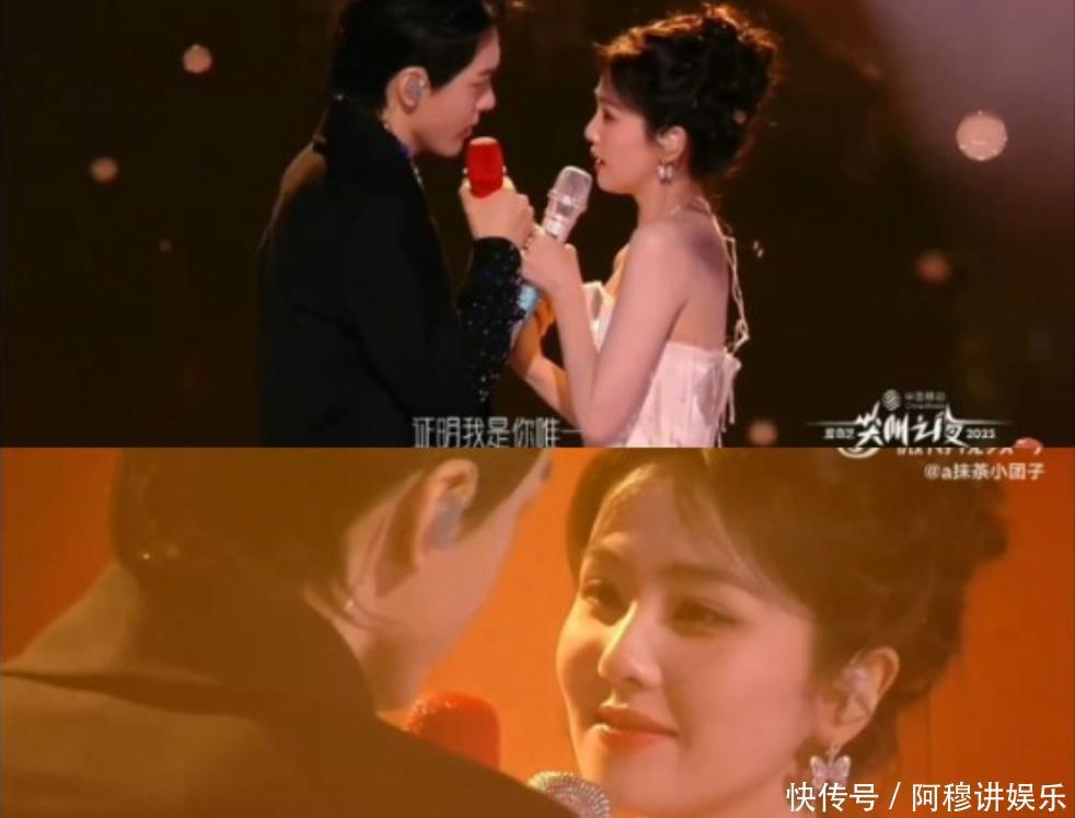 有趣的是,中场白鹿换与合作《临江仙》的曾舜晞,上台表演献唱邓紫棋的情歌《唯一》,两人边唱边牵起小手,唱到最后一句证明你是我唯一时,两人更深情对视,浓情蜜意,唱完后曾舜晞抱住白鹿,划上甜蜜 Ending,此时导播刻意 2 度将镜头对准白鹿的前任敖瑞鹏,敖瑞鹏看见两人对视时,无奈低头苦笑,看见两人拥抱时,甚至直接笑容全失,一秒变脸, 醋意大发的模样笑翻网友。 此外,身为曾舜晞好友的王楚然则被拍到摀嘴大笑,被网友亏根本在演自己看见熟人放闪时的反应,同样引发热议。